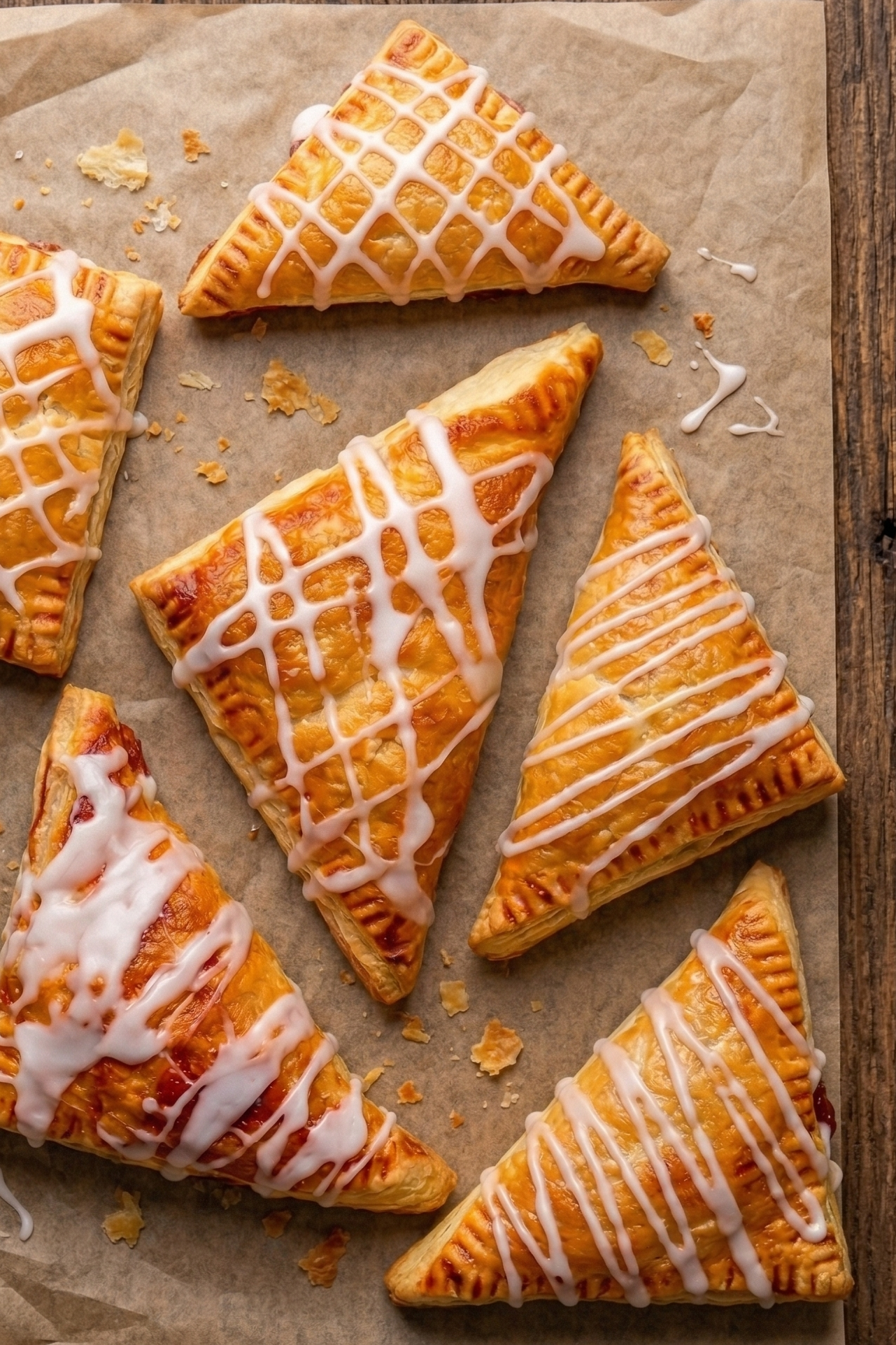 Flaky pastry filled with warm spiced apple and drizzled with sweet icing sugar frosting.