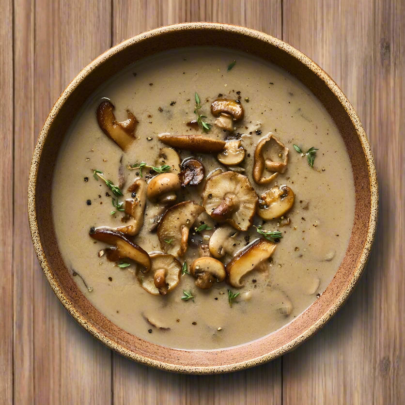 Cremini mushrooms & shiitake mushroom simmered in a fragrant broth with white wine and a splash of cashew cream.